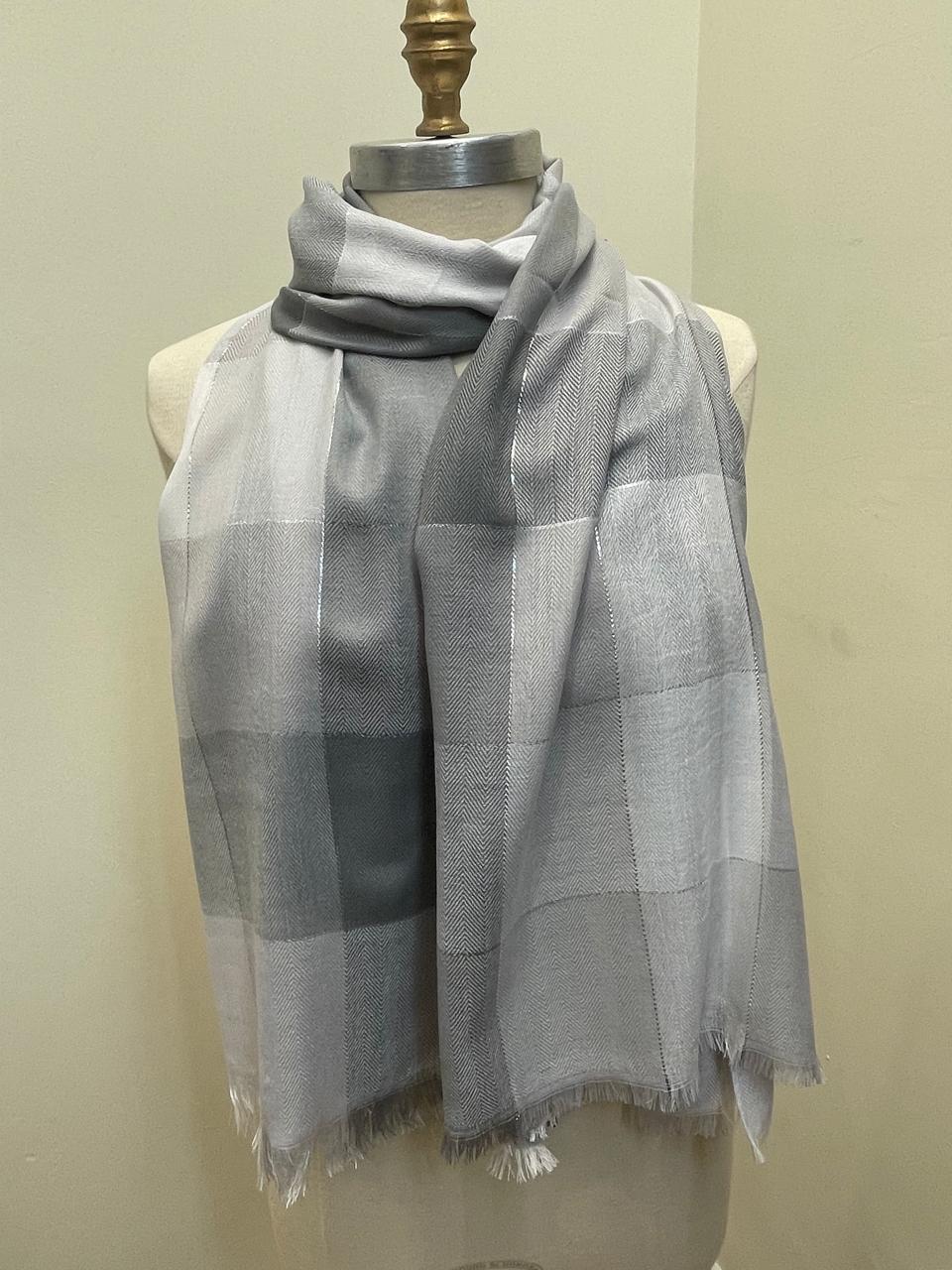 Φουλάρι από φίνο νήμα, σε καρώ σχέδιο, με ασημένια κλωστή στην ύφανση